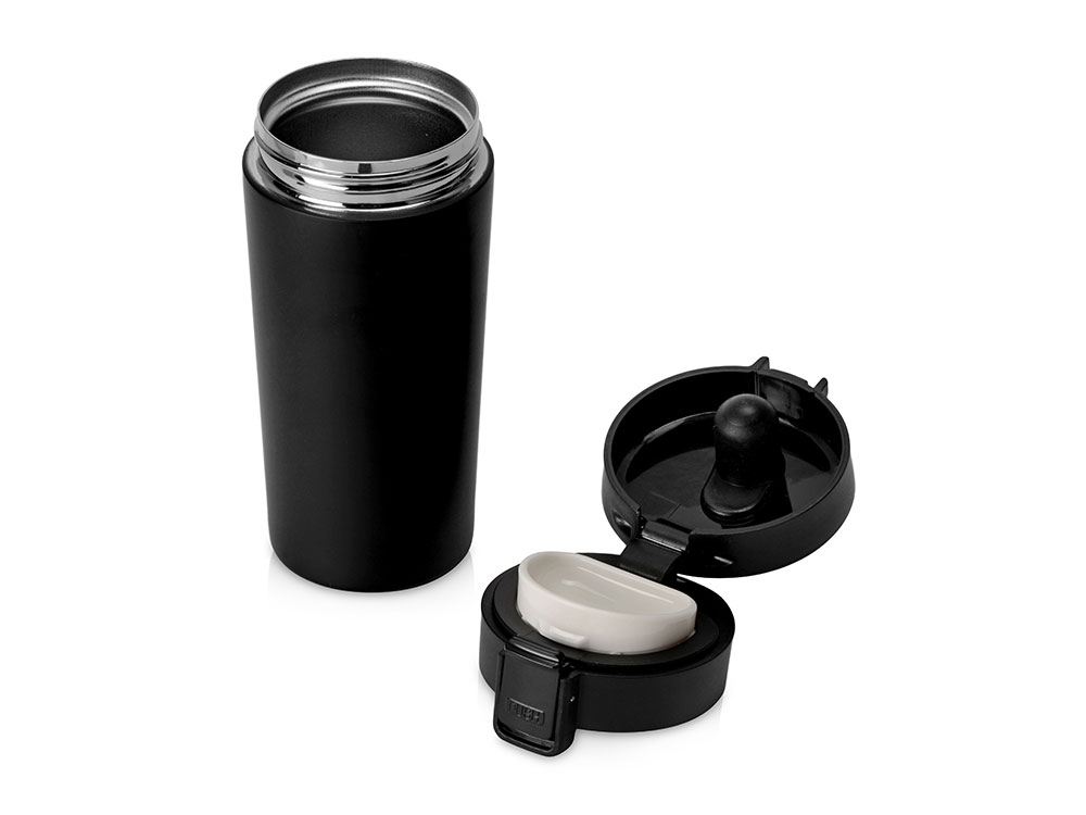 Вакуумная термокружка с двойными стенками из нержавеющей стали Trigger обладает не только стильным дизайном, но и множеством других преимуществ! Благодаря специальному механизму термокружка полностью герметична. Крышка легко открывается по нажатию кнопки. Имеется блокиратор от случайных нажатий. Для удобства использования имеется защищенное от воздействий внешней среды питьевое отверстие и ситечко. На корпусе можно сделать лазерную гравировку, а плоская крышка идеально подойдет для УФ-печати. Держит тепло в течение 8 часов.