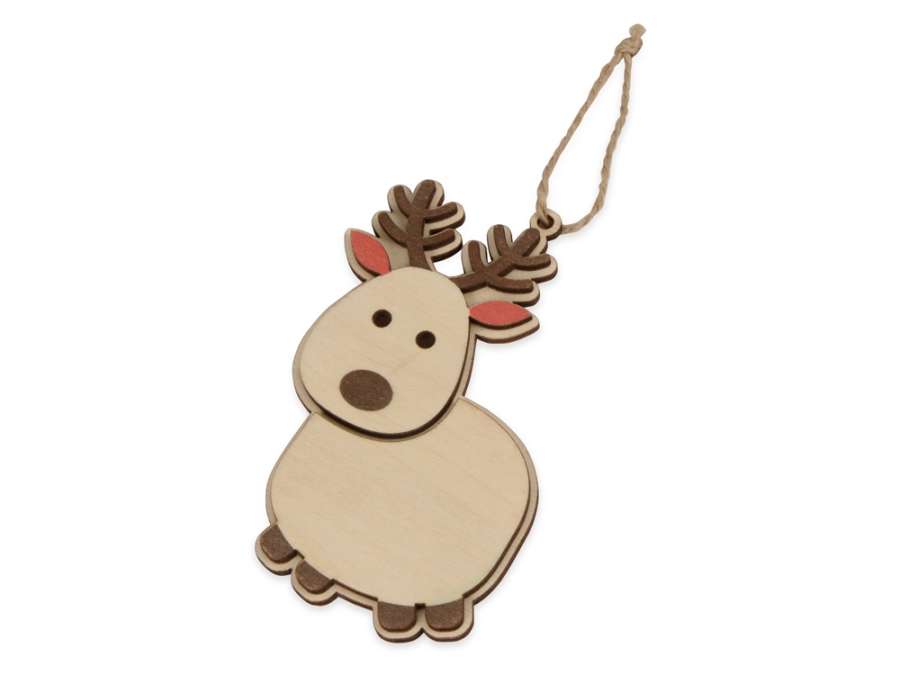 Елочная игрушка в виде праздничного символа - новогоднего оленя. Изготовлен из нескольких слоев березовой фанеры и украшен тонировкой.