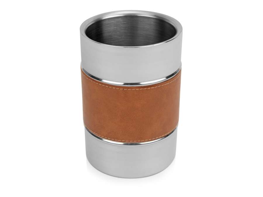 Благодаря двойным стенкам этот компактный и небольшой по объему кулер не позволит вашем напитку согреться в течение всего вечера. Более того, на корпусе охладителя Bradley имеется благородная вставка из искусственной кожи, на которой эффектно будет смотреться любой логотип или корпоративный слоган.