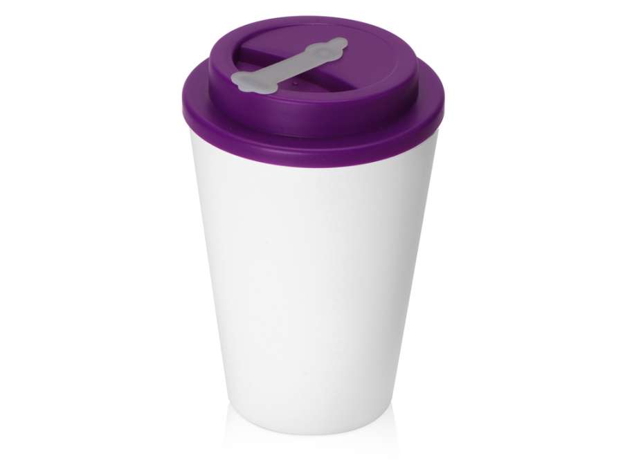 Пластиковый стакан Take away с двойными стенками и крышкой с силиконовым клапаном, 350 мл, белый/фиолетовый