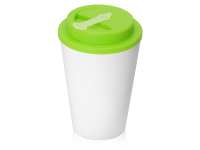 Пластиковый стакан Take away с двойными стенками и крышкой с силиконовым клапаном, 350 мл, белый/зел. Яблоко