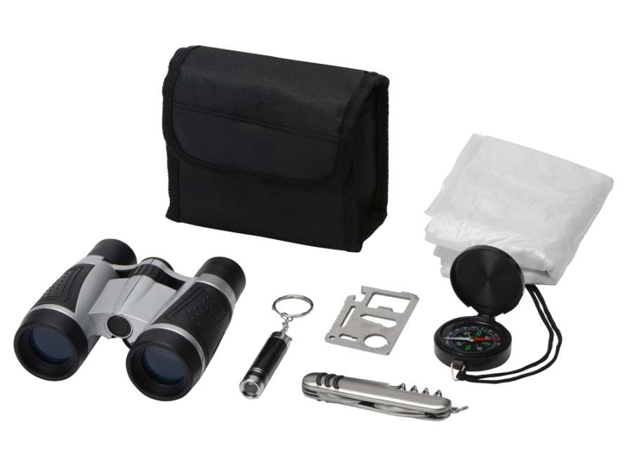Набор Турист - отличный подарок для увлеченных пешими путешествиями людей. Набор путешественника пригодится для обычных прогулок, охоты, рыбалки и туристических приключений на природе. Состоит из бинокля 4х21 с салфеткой, мультитула, мультиинструмента в форме карточки, компактного фонарика, компаса и дождевика. Поставляется в черном чехле на липучке + упаковочная коробка. Фонарик работает на 3 батарейках формата LR44. Батарейки входит в комплект. Комплектность: бинокль- 11, 2 х 11 х 4, 2см, мультиинструмент- 9, 5 х 2, 7 х 1, 5см, фонарик- d1, 2 х 6см, компас- 5, 5 х 4, 7 х 1, 7см, карта-мультиинструмент-7 х4, 7х0, 2см