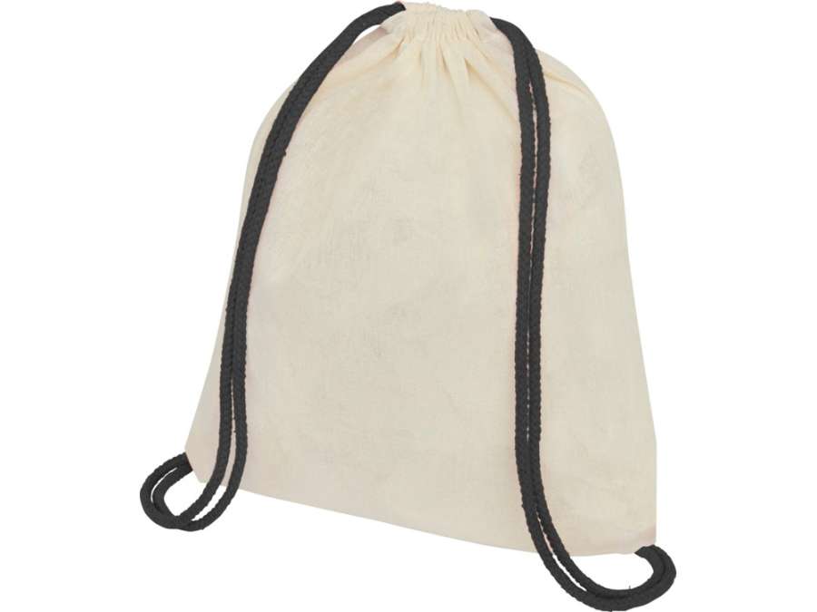 Рюкзак со шнурком Oregon, имеет цветные веревки, изготовлен из хлопка 100 г/м2, бежевый/черный