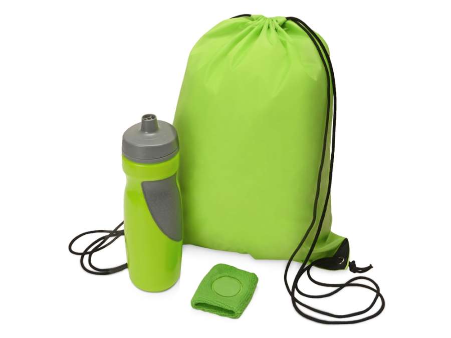 - рюкзак-мешок из полиэстера. Комплектность: рюкзак-мешок 33 х 44 см, бутылка d7, 6 x 24, 7 см, напульсник 7, 5 х 7 х 1 см