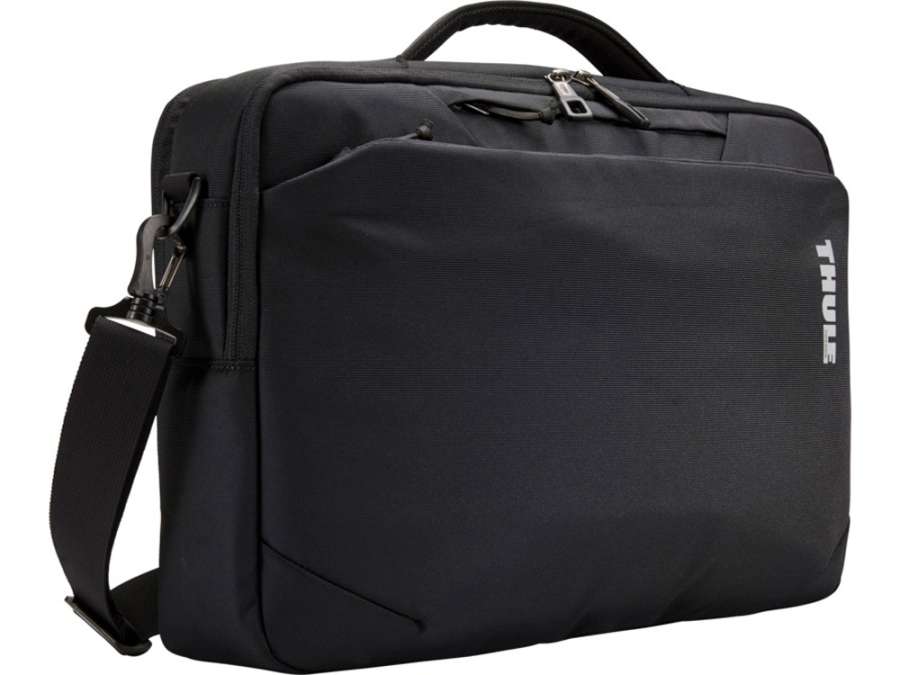 Сумка для ноутбука с главным отделением на молнии, мягким чехлом для ноутбука 15, 6 и приспособленным для планшета 10 карманом. Поставляется со специальным внутренним отделением, в котором устройство можно держать отдельно от зарядных элементов, а также с мягким внутренним карманом для защиты телефона, солнцезащитных очков или других предметов и несколькими карманами во внутренней части, на передней и задней панелях. Имеет рукав для фиксации на выдвижной ручке дорожной сумки, заднюю панель с наполнением и съемный мягкий наплечный ремень. Водонепроницаемая.