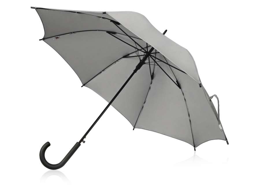 Полуавтоматический зонт-трость c куполом из плотной светоотражающей ткани обеспечит дополнительную безопасность в темное время суток. Специальная конструкция анти-шторм разработана для самых суровых погодных условий - спицы не сломаются при сильном порыве ветра. Ручка с мягким покрытием софт тач.