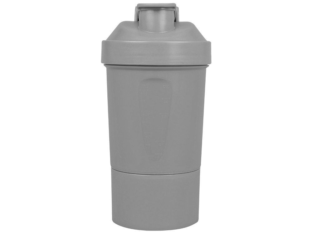 Шейкер для спортивного питания - это один из необходимых аксессуаров для спортсменов и людей, ведущих активный образ жизни. В нем можно приготовить протеиновый коктейль или фруктовый напиток. Шейкер классической формы, он удобно лежит в руке, к донышку прикручивается емкость для смешивания (таблетница), в которой можно хранить спортивные добавки: протеиновый порошок, витамины и другие концентраты. Внутри колбы имеется пластиковая сетка, чтобы процеживать спортивный напиток, а также металлический размешиватель, который растворяет порошок в напитке без комочков. Объем - 400мл. Шейкер изготовлен из пищевого пластика, он герметичен и легко моется.