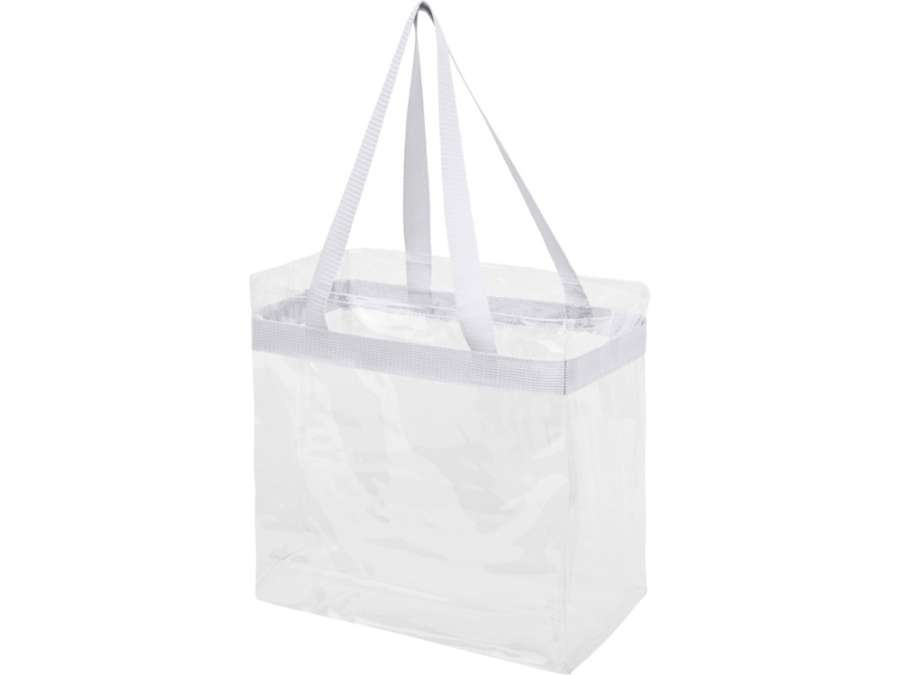 Эта прозрачная сумка отлично подходит для фанатов, которые предпочитают безопасно паковать свои принадлежности для стадиона и мероприятий. Она также подходит для работы и школы. Открытое основное отделение со спортивной сетчатой отделкой и двумя ручками. Высота ручек 27 см. Принадлежности не включены. ПВХ.