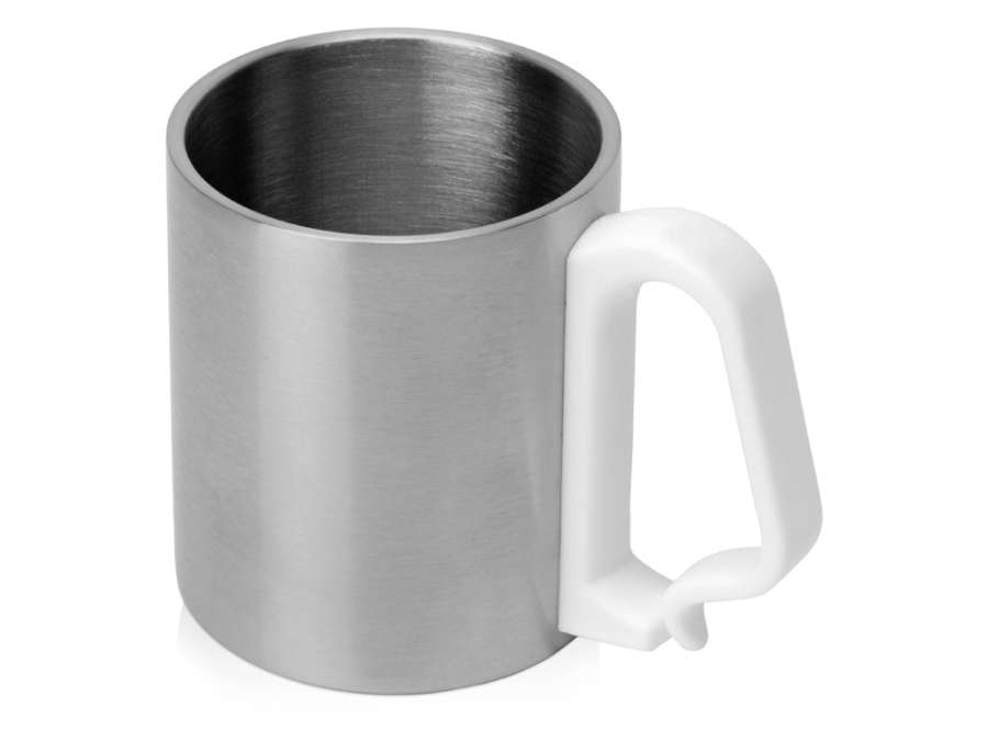 Стальная кружка Climber с пластиковой ручкой, серебристый/белый