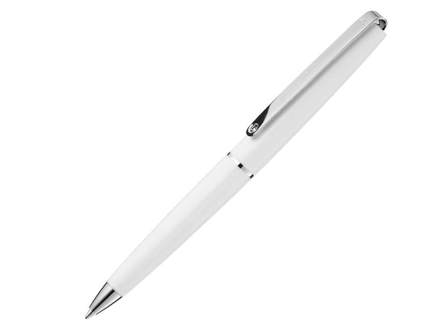Металлическая шариковая ручка с мягким поворотным механизмом, глянцевым корпусом, длинным гибким металлическим клипом, декоративное кольцо и наконечник с глянцевой хромированной отделкой.