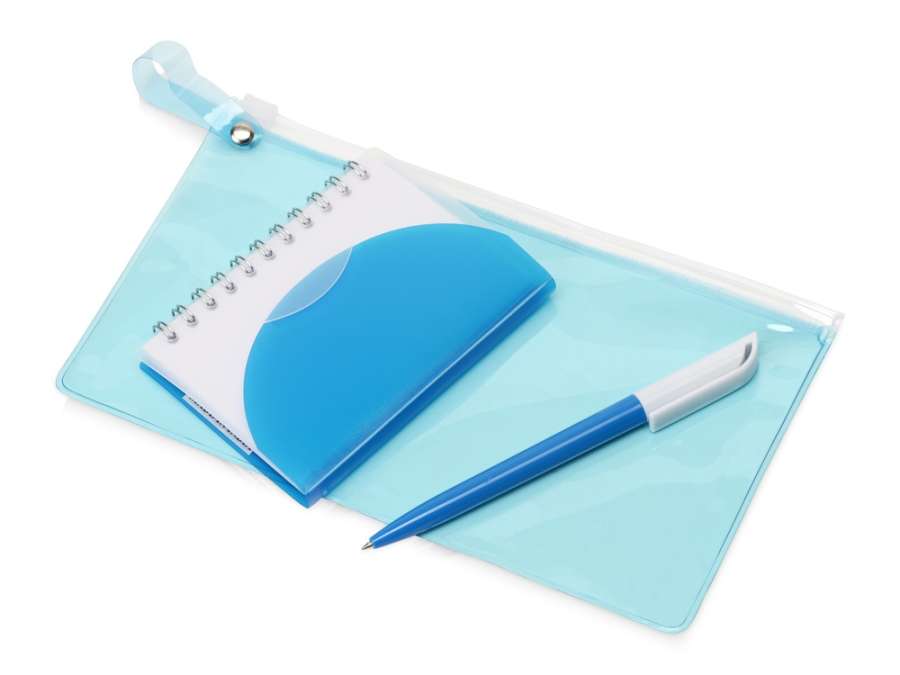 | Цвет: | блокнотемно-прозрачный, голубой, ручка- голубой, белый, пенал- голубой прозрачный |