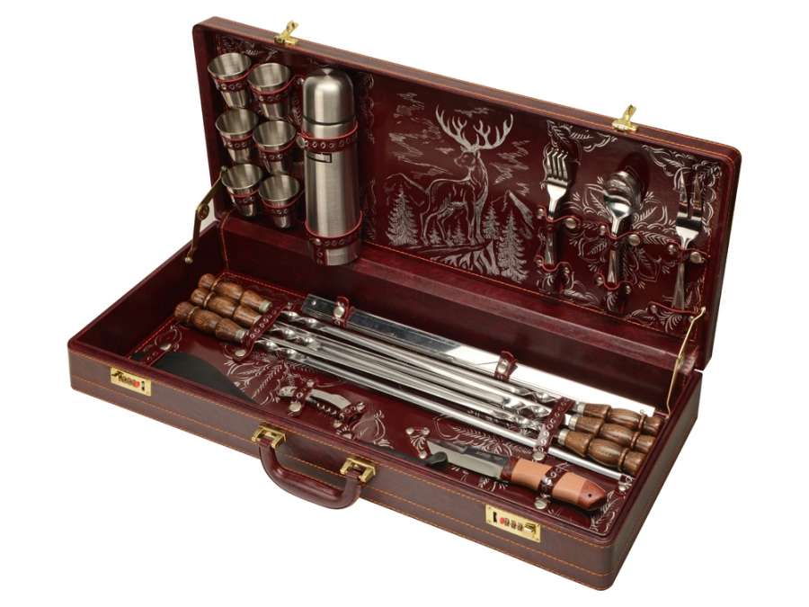 Нож Проводник 47 х 8 х 3 см - 1шт Комплектность: стопка- 6шт, термос, вилка- 6шт, ложка- 6шт, вилка для барбекю, нож, ножки для мангала- 2шт, шампур- 6шт, штопор, нож Проводник