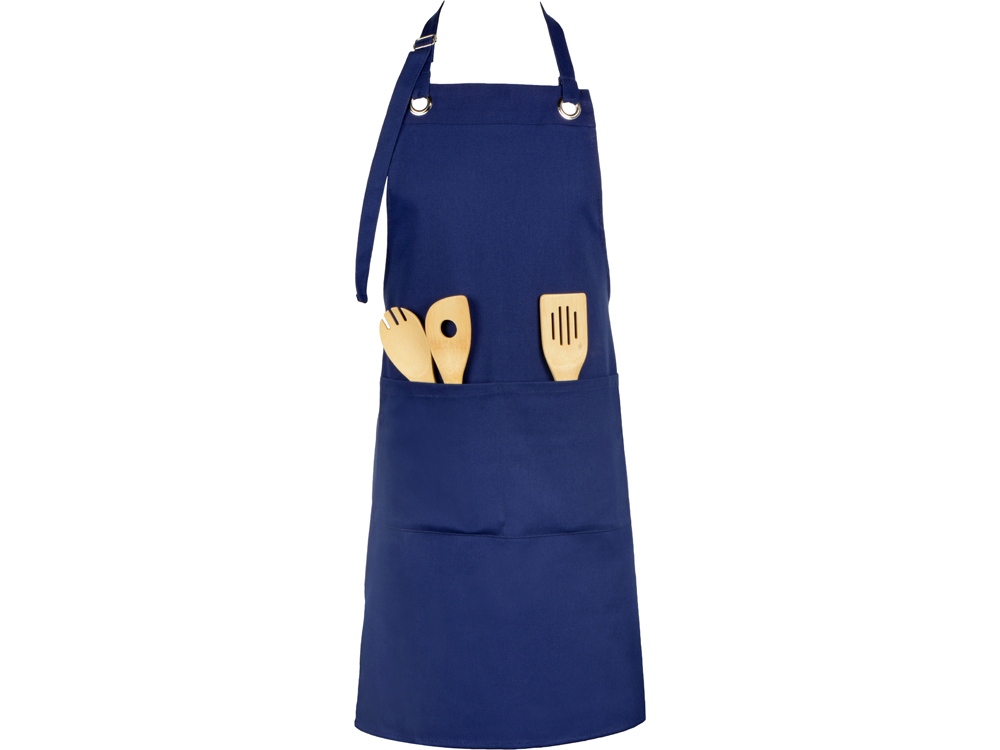 Хлопковый фартук Delight с карманом и регулируемыми завязками, синий нэйви