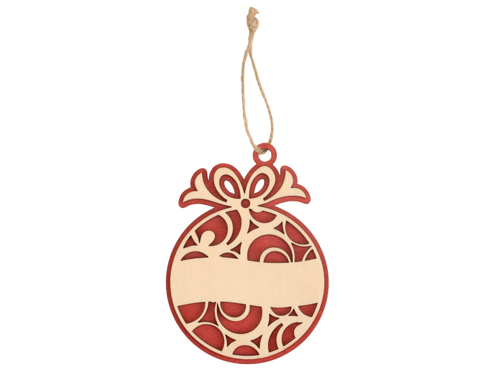 Оригинальное елочное украшение в виде ажурного новогоднего шара выполнено из березовой фанеры и тонировано в красный цвет. Поле для нанесения – широкая лента, обхватывающая шар, на которой ваши пожелания или логотип будут смотреться как нельзя уместно, органично вписываясь в облик изделия.