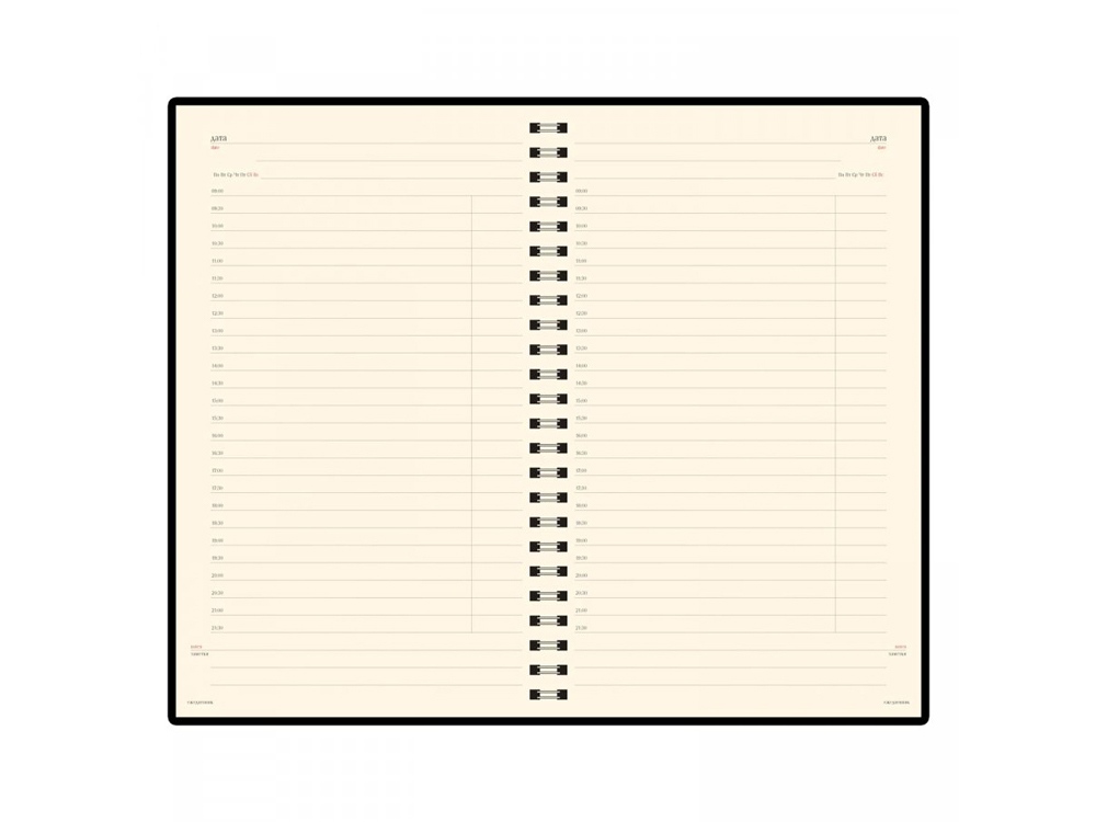 Ежедневник Milano от бренда Bruno Visconti - это сочетание элегантности и практичности. Закругленная обложка из классического переплетного материала - хорошая альтернатива натуральной коже. Форма обложки подчеркнута аккуратной строчкой по краю. Внутренний блок формата А5 на современном креплении – полускрытом гребне – содержит 272 страниц. Для них подобрана первосортная бежевая бумага повышенной плотности (70 г/кв м). Помимо рабочих страниц в структуру блока включены телефонная книга и справочный раздел. На страницах для планирования есть удобная почасовая разбивка.