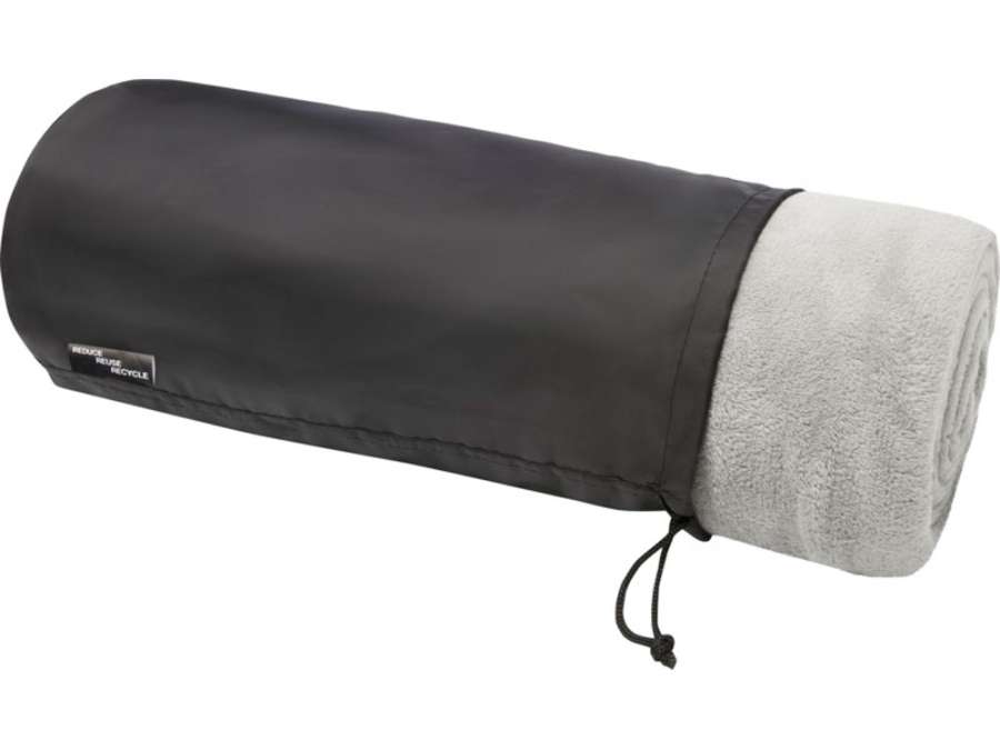 Ультрамягкий плед из синтетического трикотажного полотна из вторичного ПЭТ. 100% переработанный полиэстер, 240 g/m2. Поставляется с сумкой для переноски из вторичного ПЭТ 190T с застежкой на шнурке. Размер сумки d16 х 37 см. Упаковано в полиэтиленовый пакет из переработанного материала.
