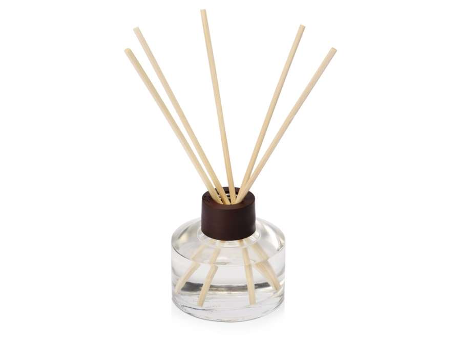 Объем диффузора 50мл. Его будет достаточно для умеренного поддержания аромата в комнате до 15м2 в течение двух месяцев использования. Комплектность: пузырек d5, 8 х 6, 1 см, палочка d0, 3 х 15 см- 5шт