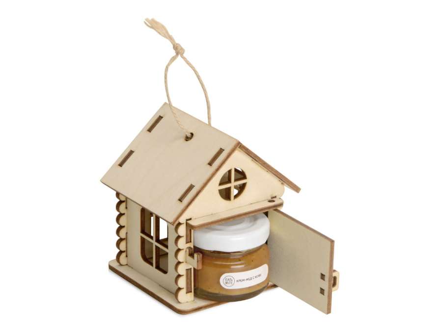 В домике открывается дверца, и в него можно поместить небольшую баночку с медом или вареньем. Оригинальная конструкция сувенира украсит любой интерьер, как в офисе, так и в квартире. Подарочная упаковка Домик позволит вам сделать оригинальный и запоминающийся подарок для руководителя или коллеги. Комплектность: подарочная упаковка Домик 7 х 7 х 8, 6 см, крем-мед с кофе 35 г, d4, 4 х 3, 5 см