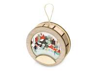 Новогодняя подвеска для елки станет прекрасным вариантом подарка: посмотрите, эти игрушки видно не только при свете дня, но и в темноте, ведь они могут светить сами! Игрушка с подсветкой выполнена из фанеры, фрагмент с изображением — напечатан на пропускающем свет материале. Подвеска сияет мягким разноцветным светом, подчеркивая пейзаж. Станет прекрасным вариантом для подарка, который будет радовать ваших адресатов долгие годы, каждую зиму красуясь на зеленых лапах елки.