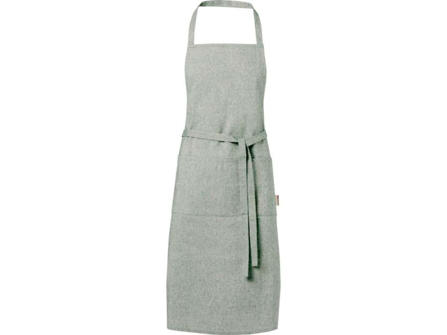 Фартук из смеси переработанного хлопка и полиэстера плотностью 200 г/м². Имеет два смежных кармана общим размером 45 x 20 см и завязку на спине длиной 1 метр. Вторичный хлопок изготавливается из отходов, предназначенных для потребления, которые производятся текстильными фабриками в процессе резки. Из-за особенностей переработанного хлопка возможно незначительное несоответствие цвета. Благодаря этому внешний вид выглядит более аутентичным. Длина шейного ремешка: 55 см. 100% переработанный хлопок, 200 g/m2, 100% переработанный полиэстер.