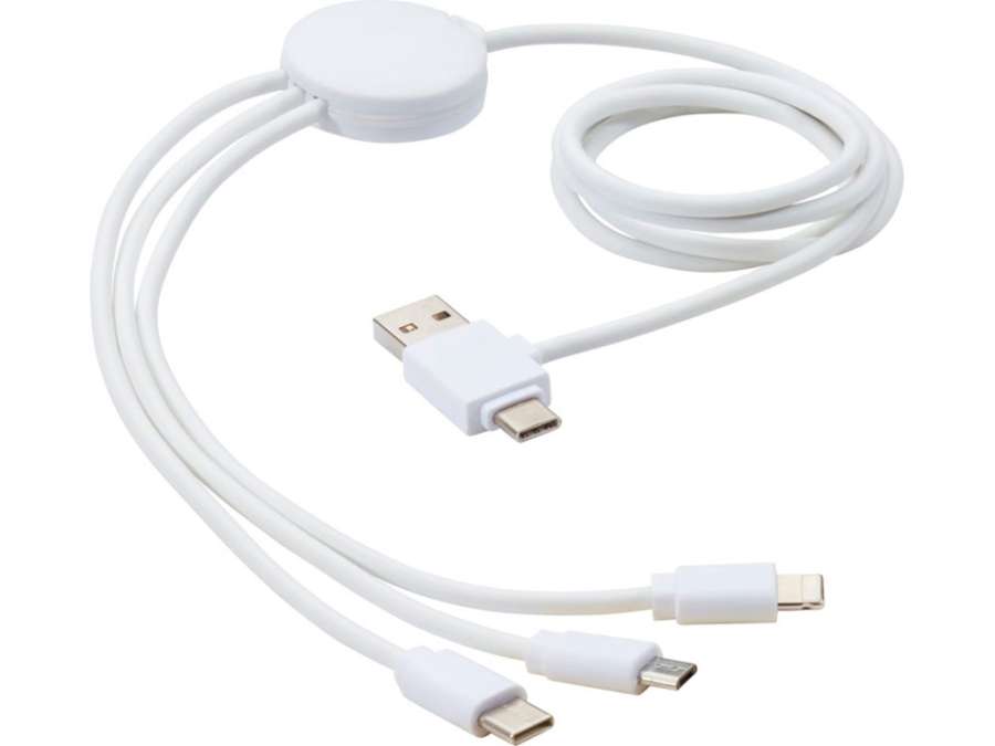 Зарядный кабель с противобактериальной присадкой и 5 разными разъемами: Вход Тип-C, вход USB-A, выход Тип-C, выход iOS и выход micro USB. С возможностью использования кабеля с устройствами с выводом Тип-C, которым оснащены телефоны и компьютеры MacBook нового поколения. Длина кабеля составляет 100 см. Противобактериальная присадка способна эффективно снижать уровень бактерий, присутствующих на поверхности материала, с высокой эффективностью подавляя рост бактерий и грибков, создающих неприятные запахи, приводящих к окрашиванию и деградации текстильных и пластиковых изделий. Протестировано в соответствии с ISO 20743: 2013. ПВХ, Пластик ABS.