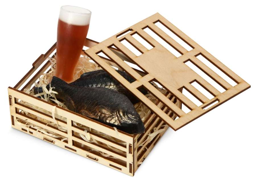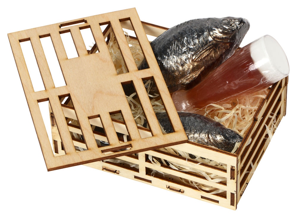 Набор мыла ручной работы Пиво и рыба, в деревянной коробке