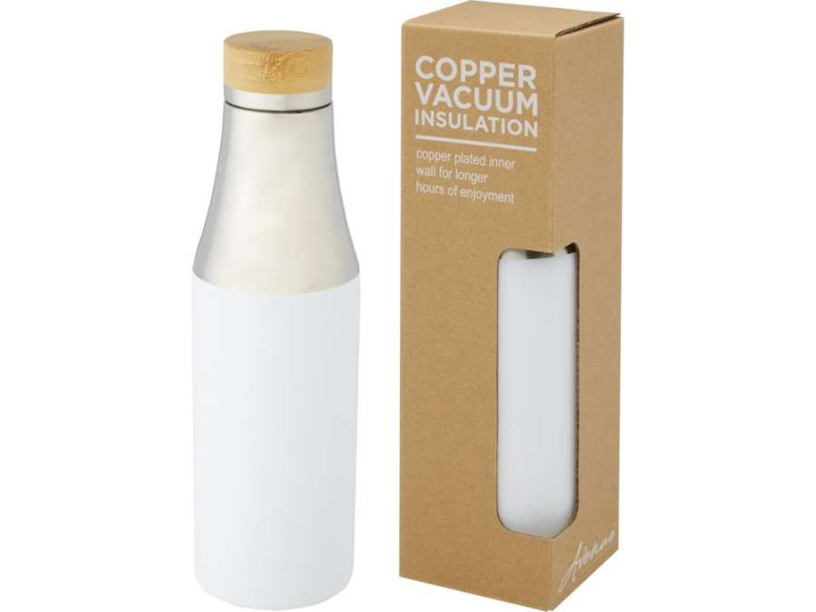 Hulan Бутылка объемом 540 мл с вакуумной изоляцией из меди и бамбуковой крышкой, белый