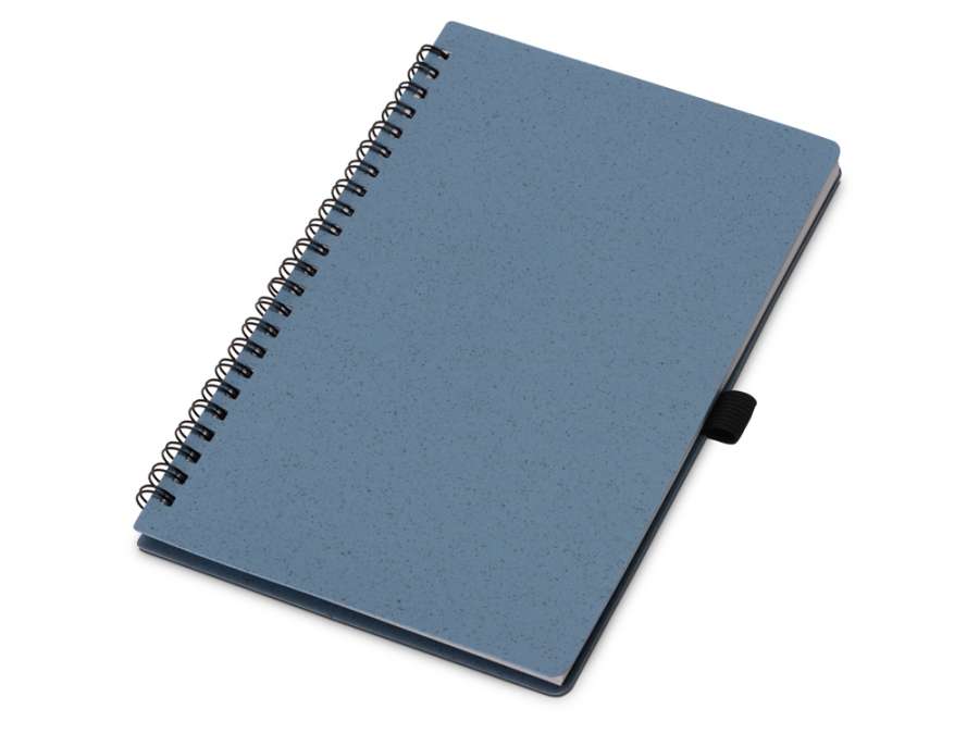 Блокнот с обложкой из переработанной пшеницы и пластика. Блок состоит из 70 листов переработанной бумаги белого цвета. Крепление - пружина. Дополнен петлей для ручки.