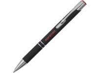 Черная шариковая ручка с кнопочным механизмом и тактильно приятным покрытием софт-тач. Цветная гравировка соответствует цвету кнопки и делает ее еще более изысканным подарком.