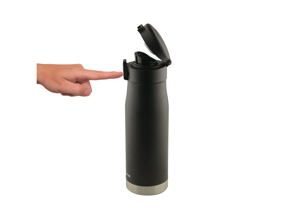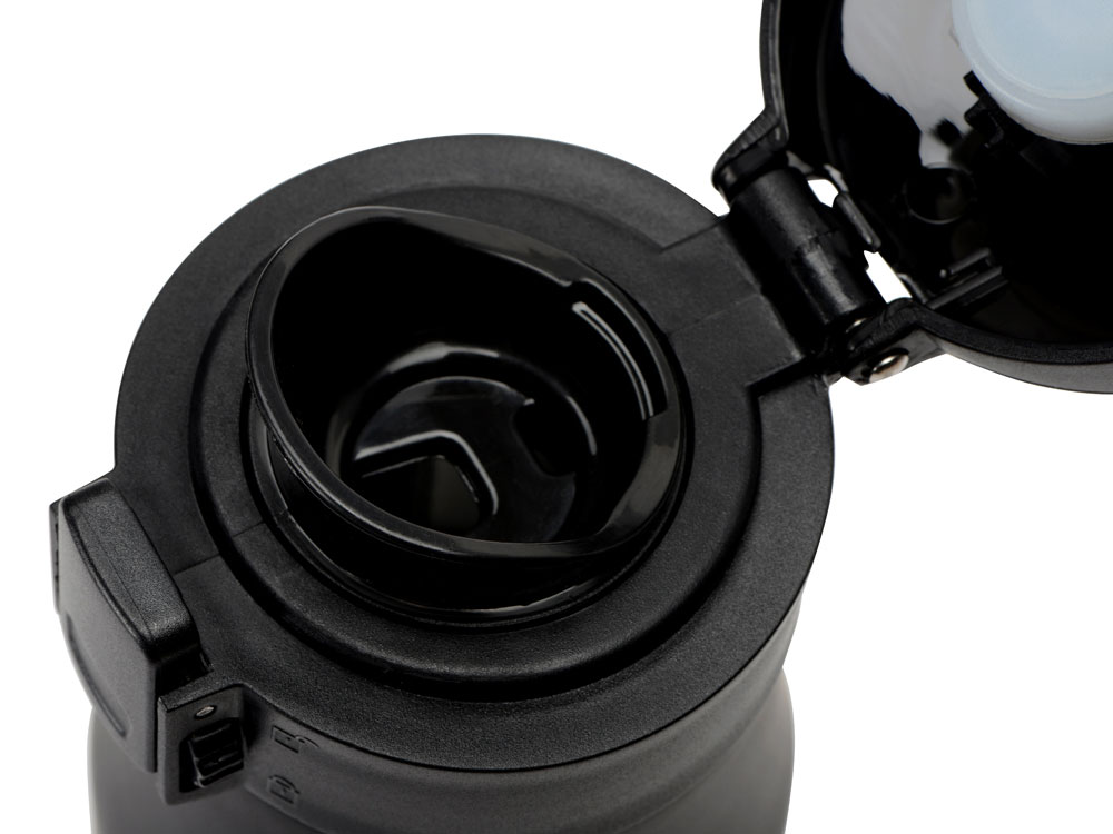 Матовый черный термос с блестящей отделкой дна. Герметичная крышка с откидным механизмом, кнопкой открывания и блокировкой от случайного нажатия защищают термос от проливания, благодаря чему содержимое вашей сумки всегда будет в безопасности с Liberty Canteen. Широкое горлышко позволяет удобно насыпать в термос лед и мыть внутреннюю колбу.