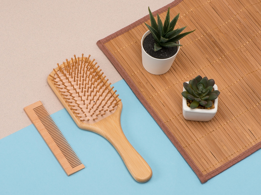Массажная щетка для волос Bambola из бамбука бережно расчесывает сухие и влажные волосы, придает им блеск, объём и гладкость.