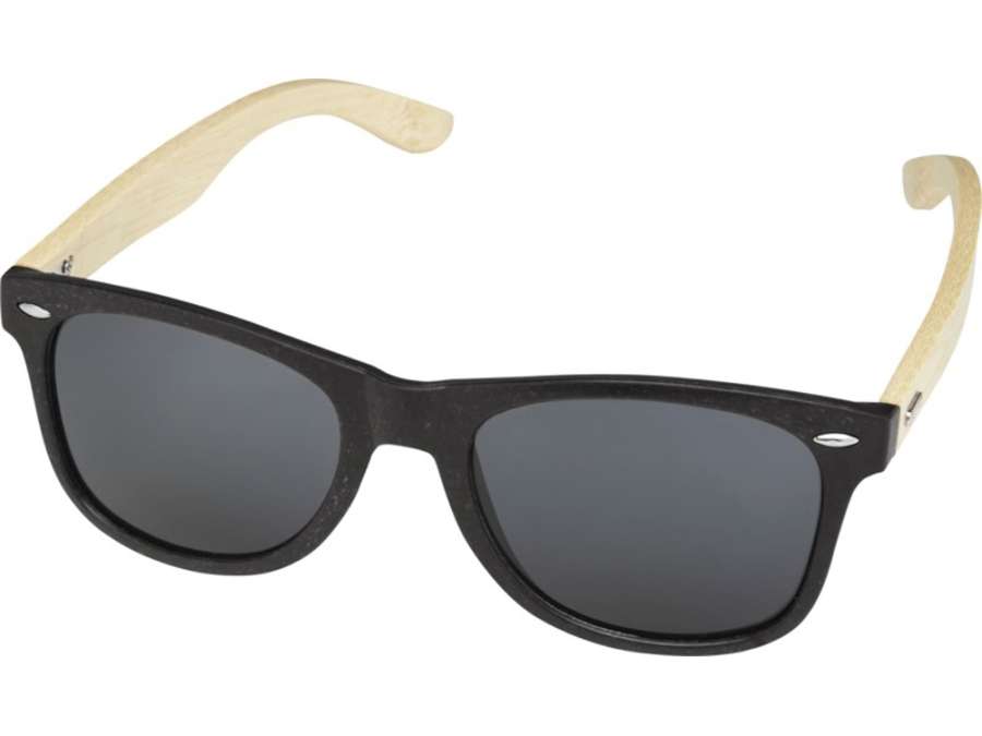 Эти солнцезащитные очки в ретро-стиле, изготовленные согласно принципам устойчивого развития, являются идеальным сувениром, который можно подарить во время промо-акций на летних фестивалях, мероприятиях и во время других событий на свежем воздухе в солнечную погоду. Оправа изготовлена из пластика и бамбука, что сокращает использование первичного пластика. Доступна в нескольких модных цветовых вариантах. Невесомые дужки с удобной посадкой изготовлены из бамбука, полученного из устойчивых, а также экологически и социально ответственных источников. Эти очки соответствуют стандарту EN ISO 12312-1, имеют линзы со степенью защиты UV400, которые относятся к категории 3, что делает их идеальным выбором для защиты от яркого солнечного света. В качестве экологически чистого варианта декорирования рекомендуется лазерная гравировка.