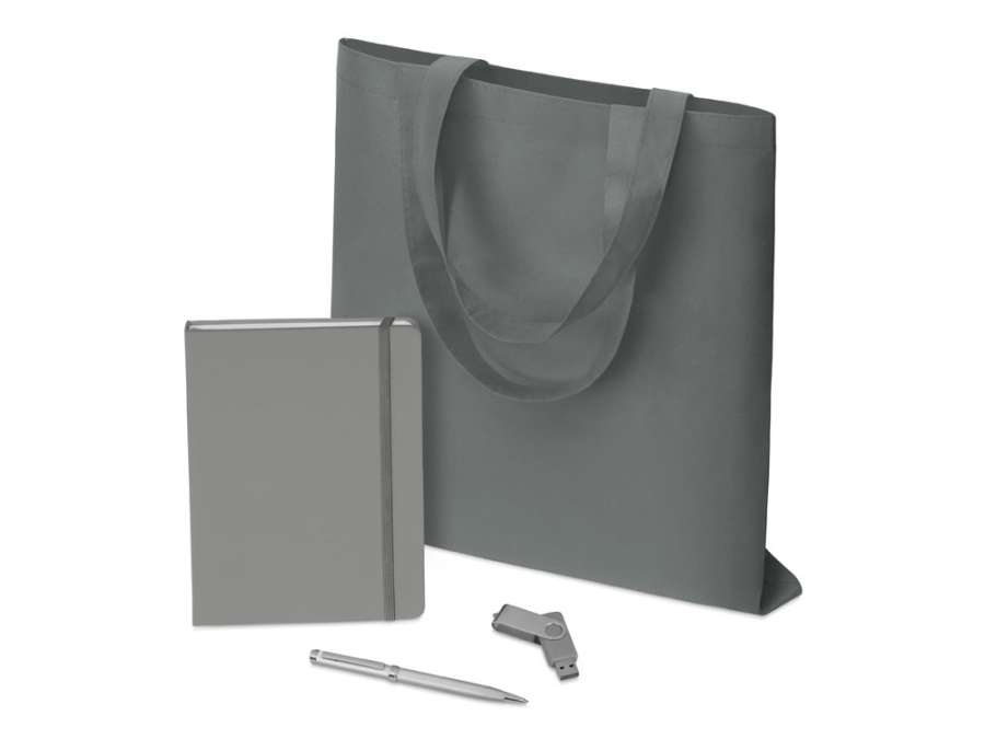 Набор Guardar - отлично подойдет для промо-акций, рекламных кампаний и деловых мероприятий. С ним можно легко провести презентацию или публичное выступление по теме. С помощью ручки Сильвер Сойер” и блокнота Spectrum A5” вы зафиксируете все свои гениальные мысли и идеи, а флеш-карта Квебек” позволит сохранить важные данные и перенести их на компьютер. Товары подобраны в единой цветовой гамме, поэтому отлично подойдут к фирменному стилю компании. Они также легко персонализируются. Комплектность: сумка, блокнот А5, ручка металлическая шариковая, USB-флешка на 16 Гб