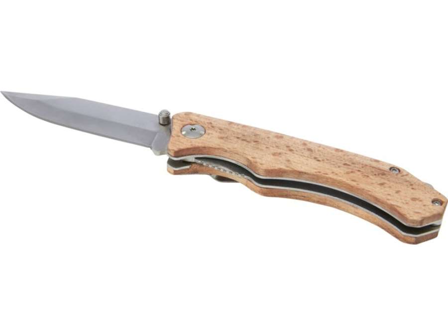 Прочный, надежный и компактный карманный нож из качественной нержавеющей стали с ручками из буковой древесины. Обязательный аксессуар для любого скаута, мастера и других любителей выживания или активного отдыха. Используемая буковая древесина поступает от надежных поставщиков, соблюдающих все экологические и социальные нормы. Нож поставляется с предохранительным замком и зажимом для ремня, размер в открытом состоянии составляет 19 x 2 x 2, 5 см, а в закрытом — 11 x 2 x 2, 5 см. Поставляется с инструкцией по эксплуатации и в подарочной коробке из переработанного картона размером 14 x 4 x 3, 5 см. В качестве экологически рационального варианта печати рекомендуется лазерная гравировка.