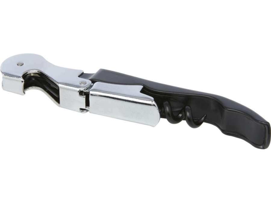 Нож официанта из нержавеющей стали с цветным корпусом со штопором, обрезчиком для фольги и открывалкой для бутылок. Благодаря двухступенчатой конструкции с его помощью вытащить пробку из бутылки не составит труда.