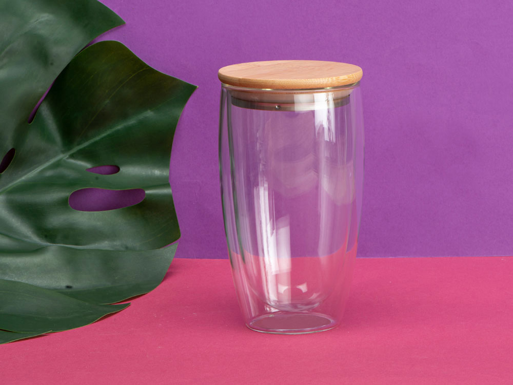 Стакан Batur с двойными стенками и бамбуковой крышкой, 450 мл