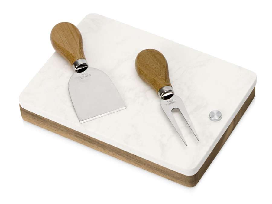 Набор для сыра бренда Eat& Bite Select состоит из ножа и вилки в футляре. Высококачественные материалы — акация и искусственный мрамор — обеспечивают набору долгую жизнь и благородный внешний вид. Крышка футляра, выполненная из белого мрамора, благодаря своей твердости может использоваться как разделочная доска, а благородный внешний вид делает ее идеальным вариантом для сервировки сыров и закусок.