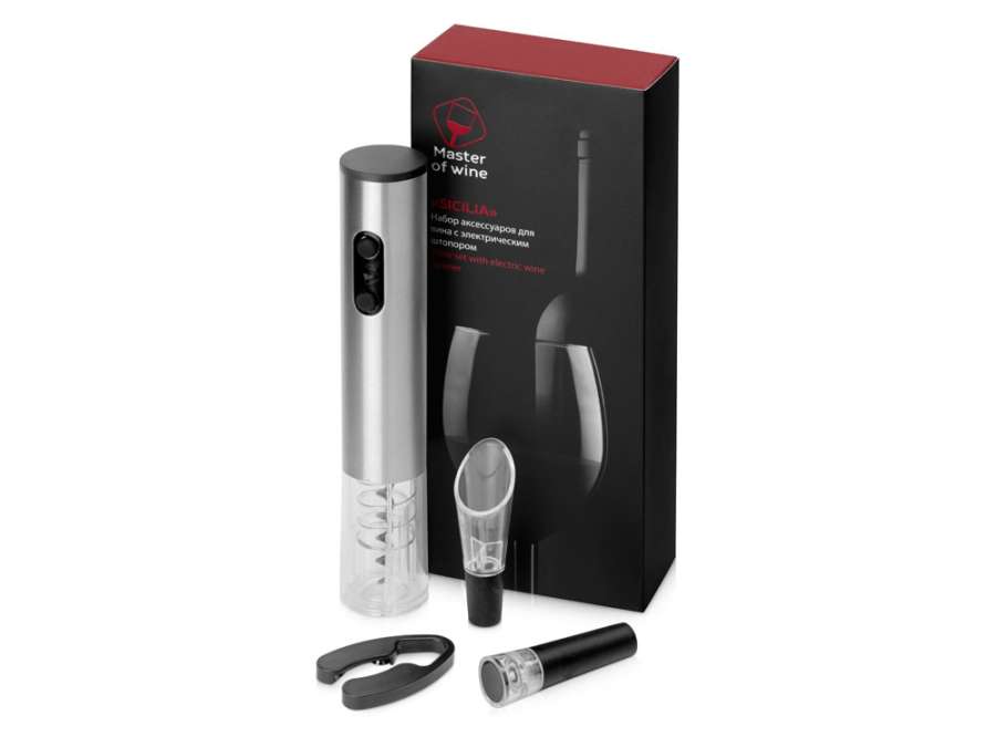 Набор винных аксессуаров Sicilia с электрическим штопором из стали, на батарейках
