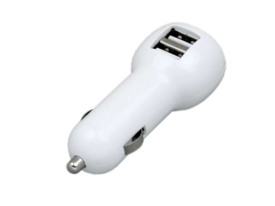 Автомобильная зарядка CC-01, 2 USB порта, белый цвет.