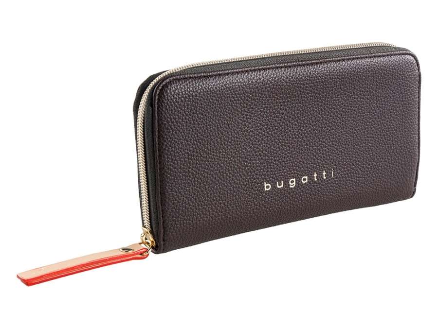 Кошелёк женский BUGATTI Ella, тёмно-коричневый, полиуретан, 19х2х10 см