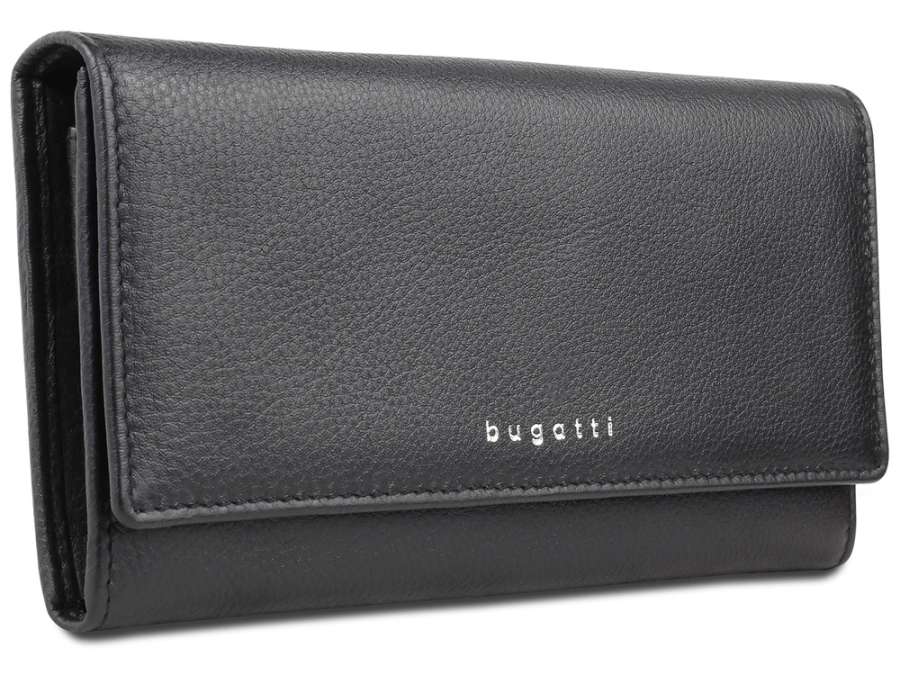 Кошелёк женский BUGATTI Lady Top, чёрный, натуральная воловья кожа, 20х2, 5х10, 5 см
