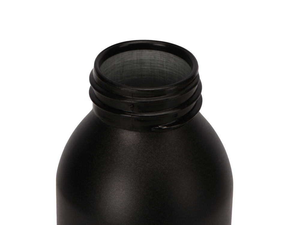 Бутылка для воды Joli выполнена из алюминия, что обеспечивает ей, при довольно солидном объеме (650 мл), сравнительно малый вес. Матовый корпус угольно-черного цвета создает интересный контраст с прозрачной крышкой яркого сочного оттенка, дополненной силиконовой петелькой в тон. Крышка плотно прилегает при закручивании, что обеспечивает Joli герметичность, а текстура покрытия корпуса не дает руке скользить при захвате.