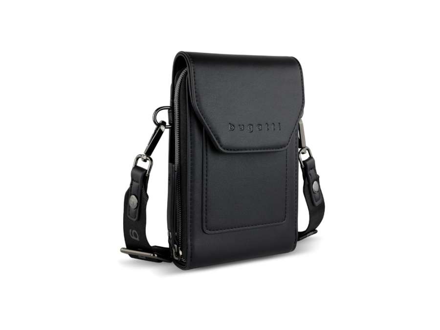 Сумка наплечная BUGATTI Almata, чёрная, полиуретан, 11х4х19 см