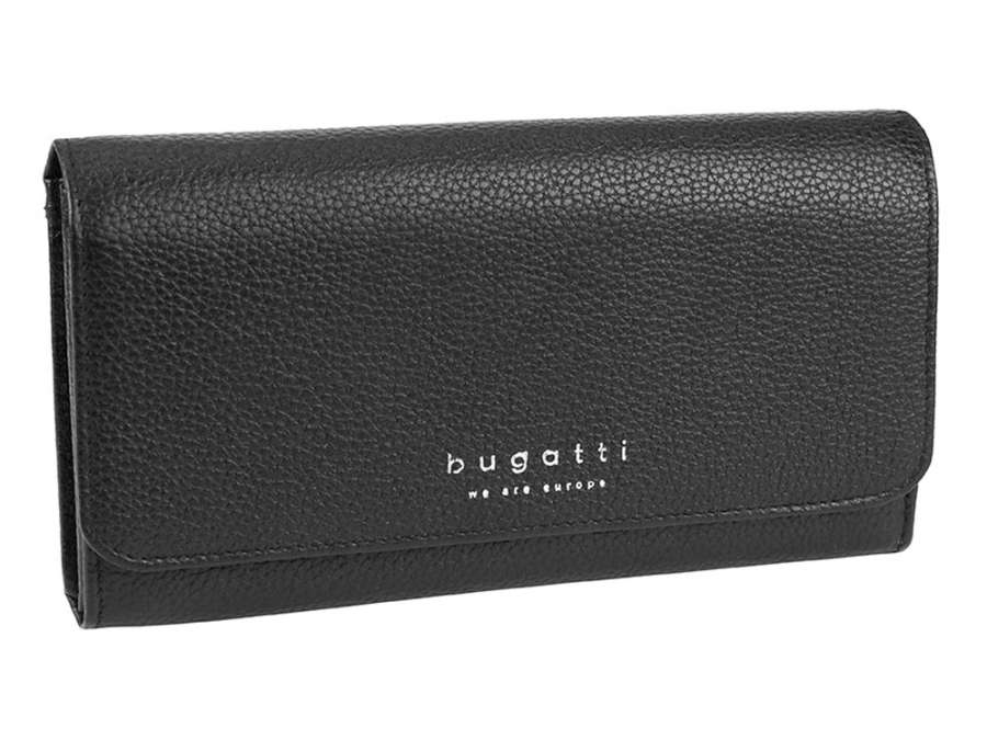 Кошелёк женский BUGATTI Linda, чёрный, натуральная воловья кожа, 19х3х10 см