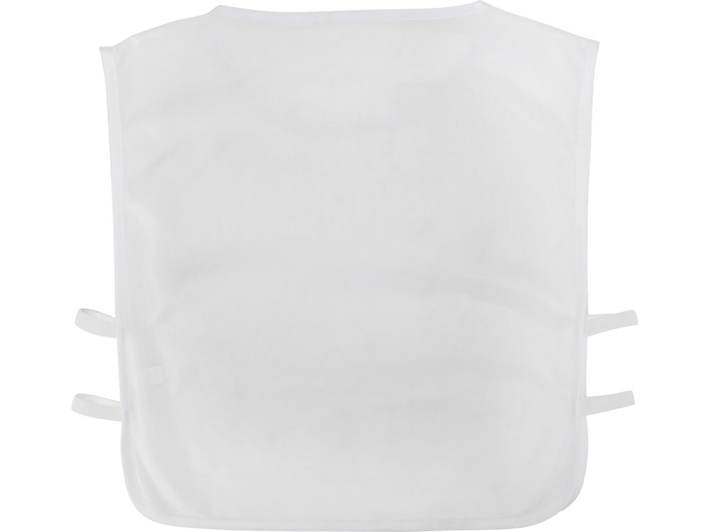 Универсальная спортивная манишка белого цвета. Боковые резинки обеспечивают удобство одевания и снятия. Материал манишки легко стирается и быстро сохнет.