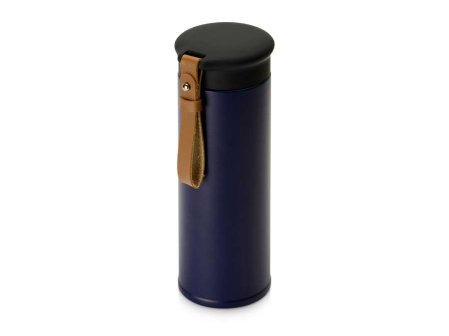 Термос герметично завинчивается на крышку, оснащенную съемным ремешком из качественной ПУ кожи. Крышка имеет прорезиненное покрытие, что создает интересное сочетание текстур в рамках одной модели. Корпус имеет элегантную рельефную поверхность с антискользящим эффектом.