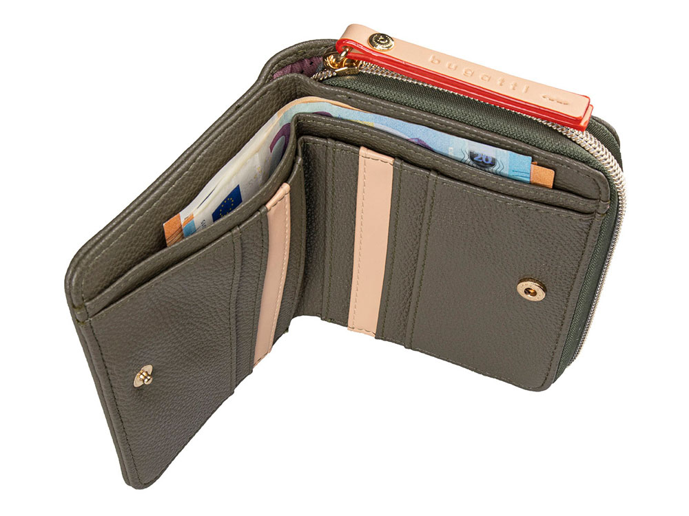 Кошелёк женский BUGATTI Ella, оливковый, полиуретан, 12х3х10 см