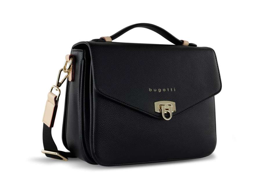 Сумка женская BUGATTI Ella, чёрная, полиуретан, 29х10х22 см