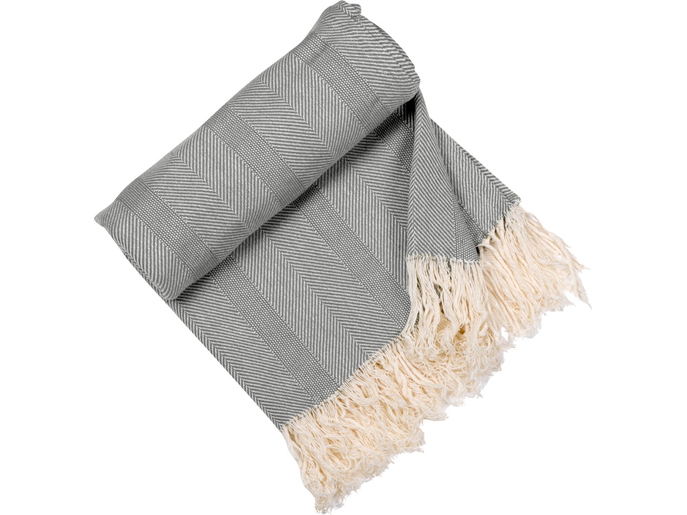 Плотный плед из натурального хлопка с бахромой по бокам. Можно использовать как одеяло или как покрывало для украшения интерьера.