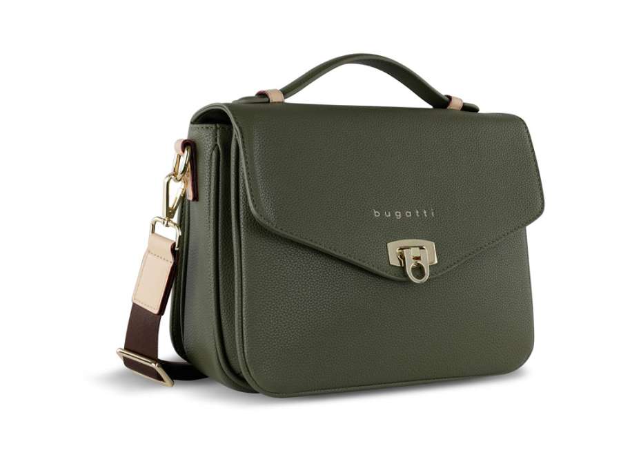 Сумка женская BUGATTI Ella, оливковая, полиуретан, 29х10х22 см
